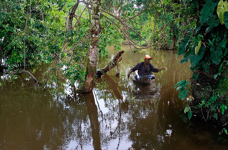 The flooded gallery forest of the Vichada River, part of the Helobiome, is known by the communities as rebalses. Each year, between May and August, these forests are inundated by rising waters, reaching their peak flood levels. This seasonal pulse is vital, enriching soils, dispersing seeds and driving fish reproduction, a key source of protein for the communities.
